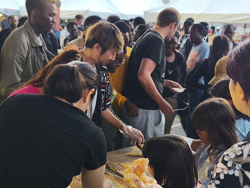 さらに、カラオケ大会や餅つき、最後には盆踊りをウガンダ人も含め皆で踊り、会場は大いに盛り上がりました。最終的には約900名にご参加いただき、多くの方に日本文化を楽しんでいただけるイベントとなりました。